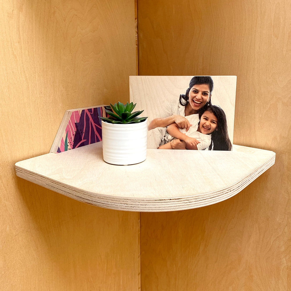 Maximize your space with the Corner Shelf. This modern, floating wood design adds warmth, function, and creativity to any room.