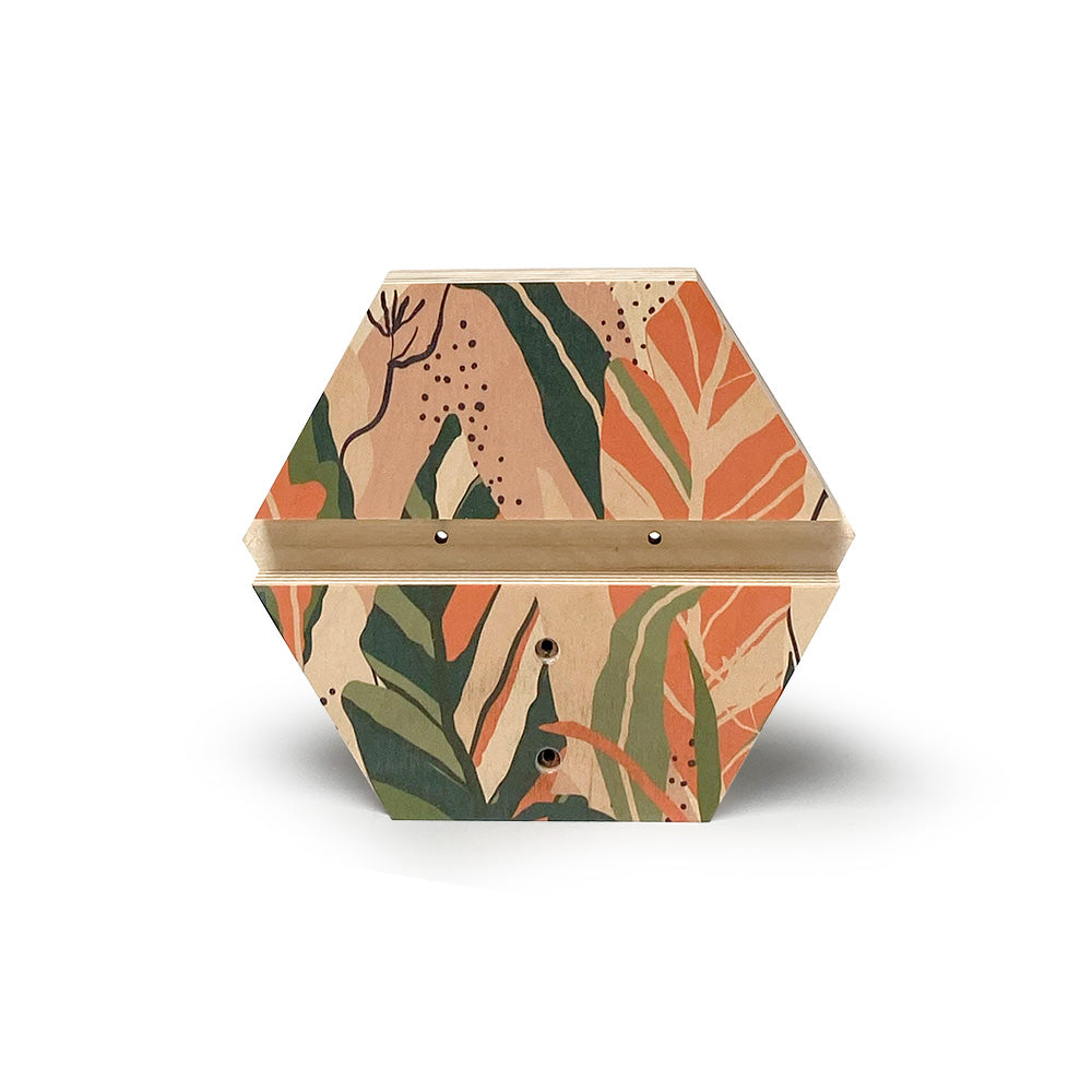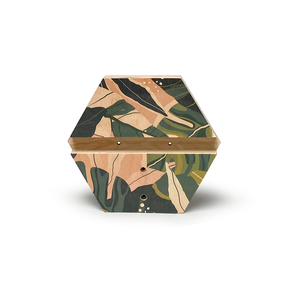 Each shelf is supported by durable hexagon brackets, available in nine exclusive prints, offering a unique geometric accent that blends strength with style. Whether you’re creating continuity across larger wall layouts or enhancing a single cozy nook, these corner shelves bring warmth, balance, and depth to any room.