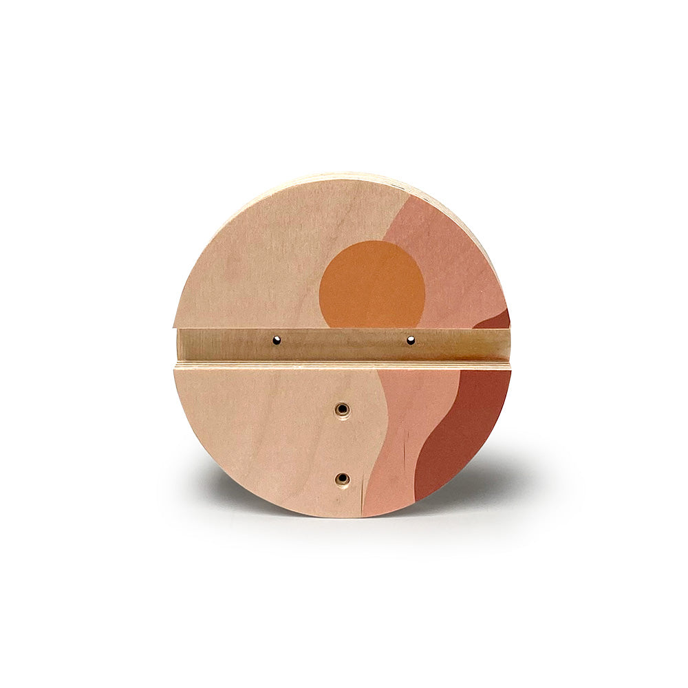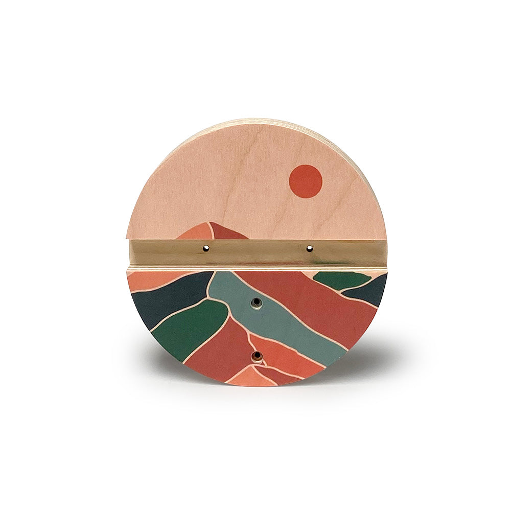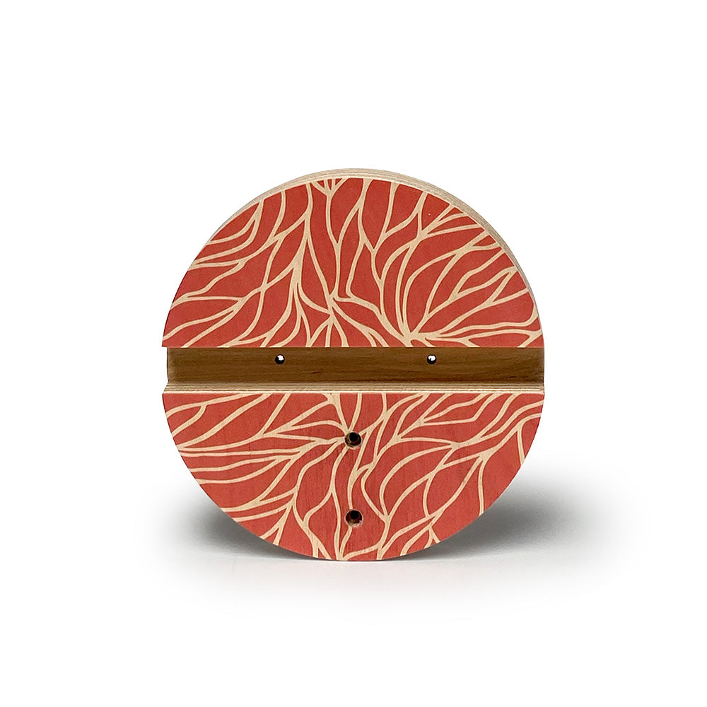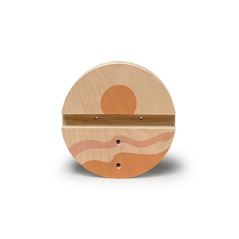 Every shelf is supported by two precision-cut circular mounting brackets, available in nine exclusive pattern options. From subtle Scandinavian textures to bold geometric prints, these brackets become a design feature of their own—pair them to build a larger wall display, or let a single shelf create a cozy, eye-catching moment.