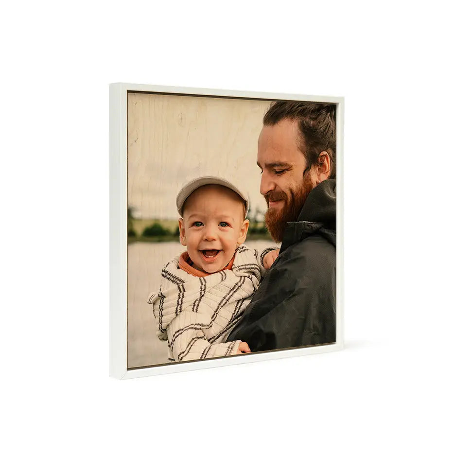 Modern Birch Square White Frame Wood Print