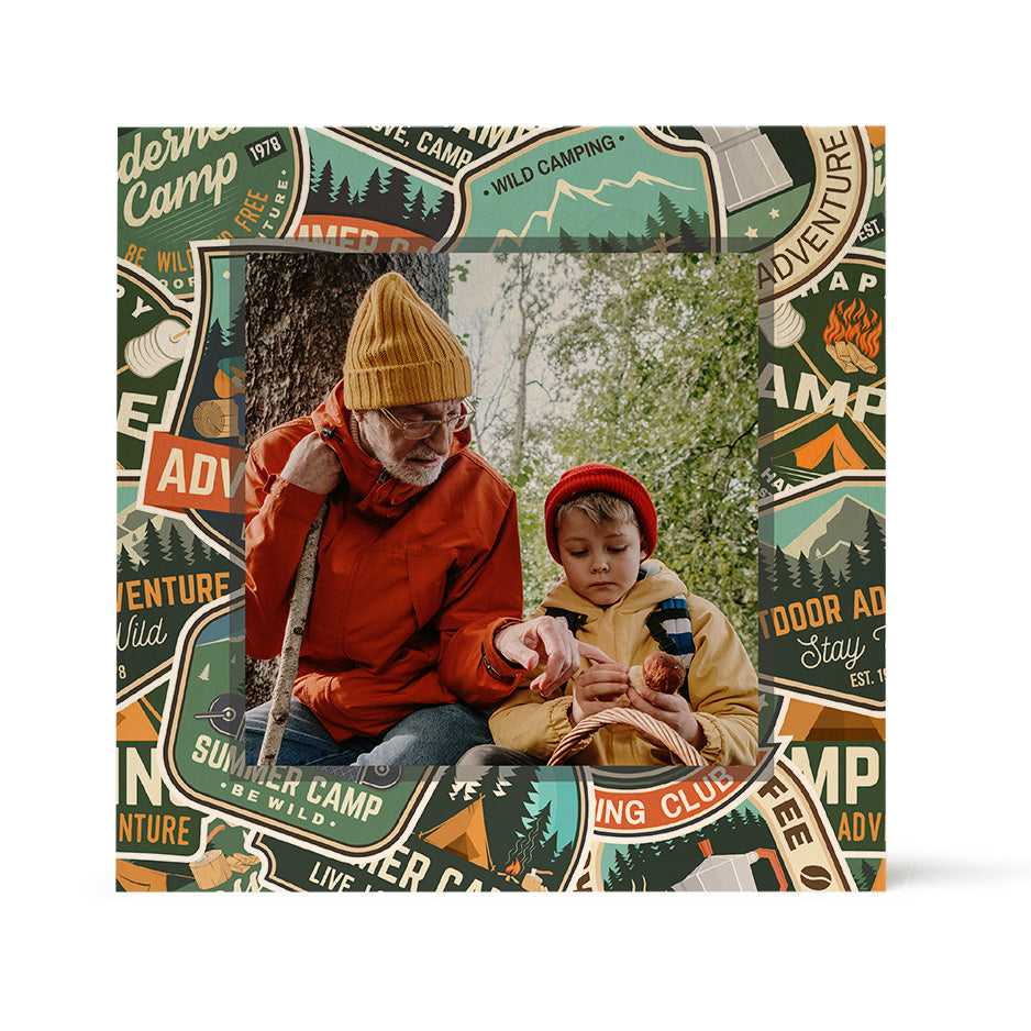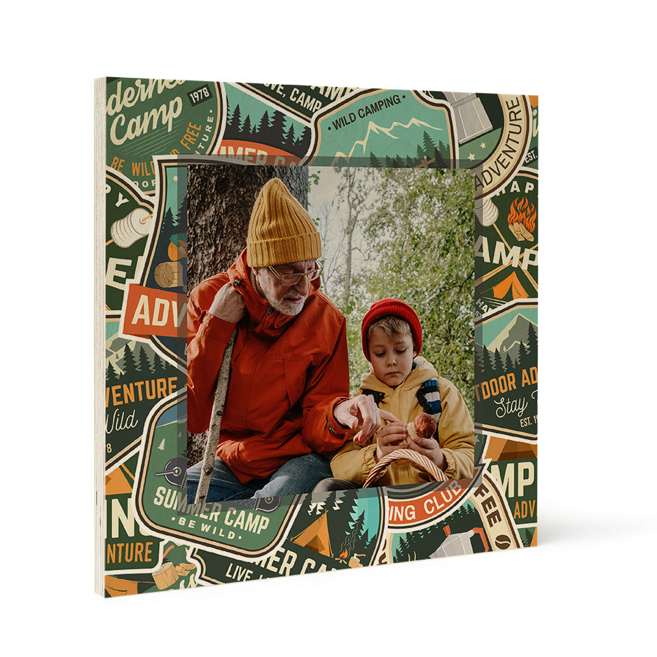 Celebrate your love for the outdoors with our Camping Badges Pattern Wood Print-a personalized piece of art that transforms your favorite camping memory into a rustic masterpiece.