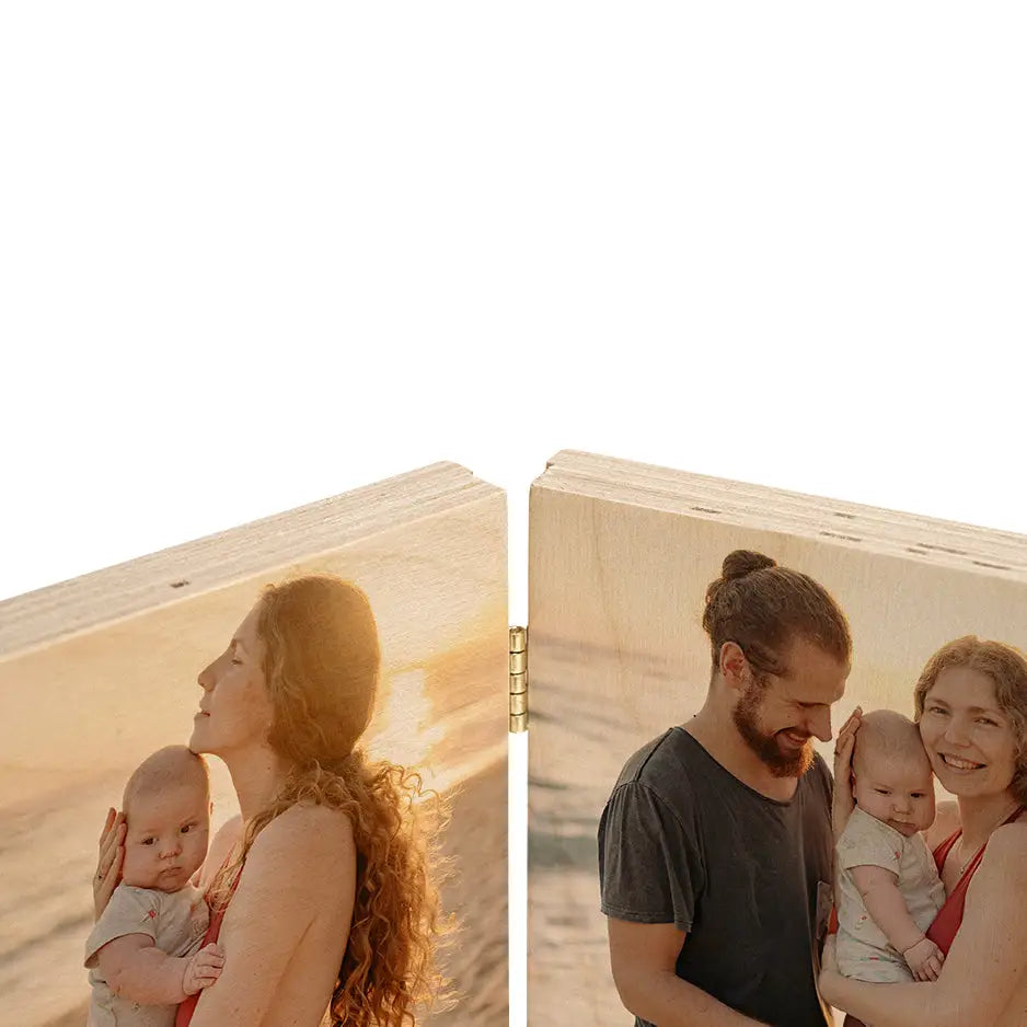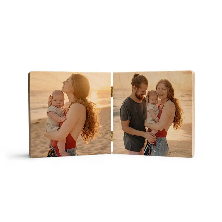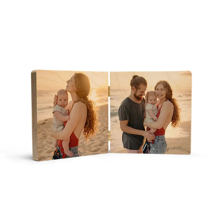 The 6x6 Photo Locket Wood Print is a captivating work of art that effortlessly adds a personal touch to any room. You can upload two images to be printed onto two 6x6 wooden panels to produce a high quality, elegant display that showcases your fondest memories. What makes this product stand out is its locket-style design. The panels hinge together, enabling you to close and open the locket to your liking. This ingenious design makes the 6x6 Photo Locket Wood Print not only decorative, but a striking conversation piece as well.