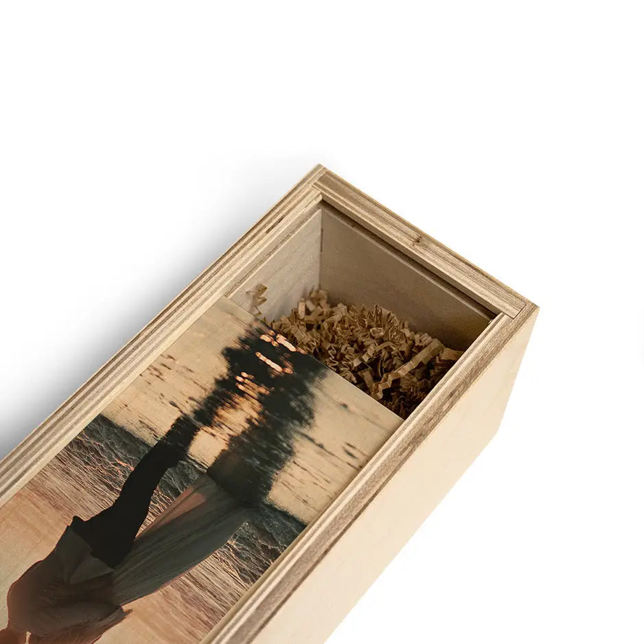 Our personalized wood bottle gift box transforms any wine, olive oil, or spirit into a meaningful moment. Each box is handcrafted from sustainably sourced birch and printed or engraved with your design, name, date, or logo. The natural wood grain and texture make every piece truly one-of-a-kind — no two boxes are ever alike.