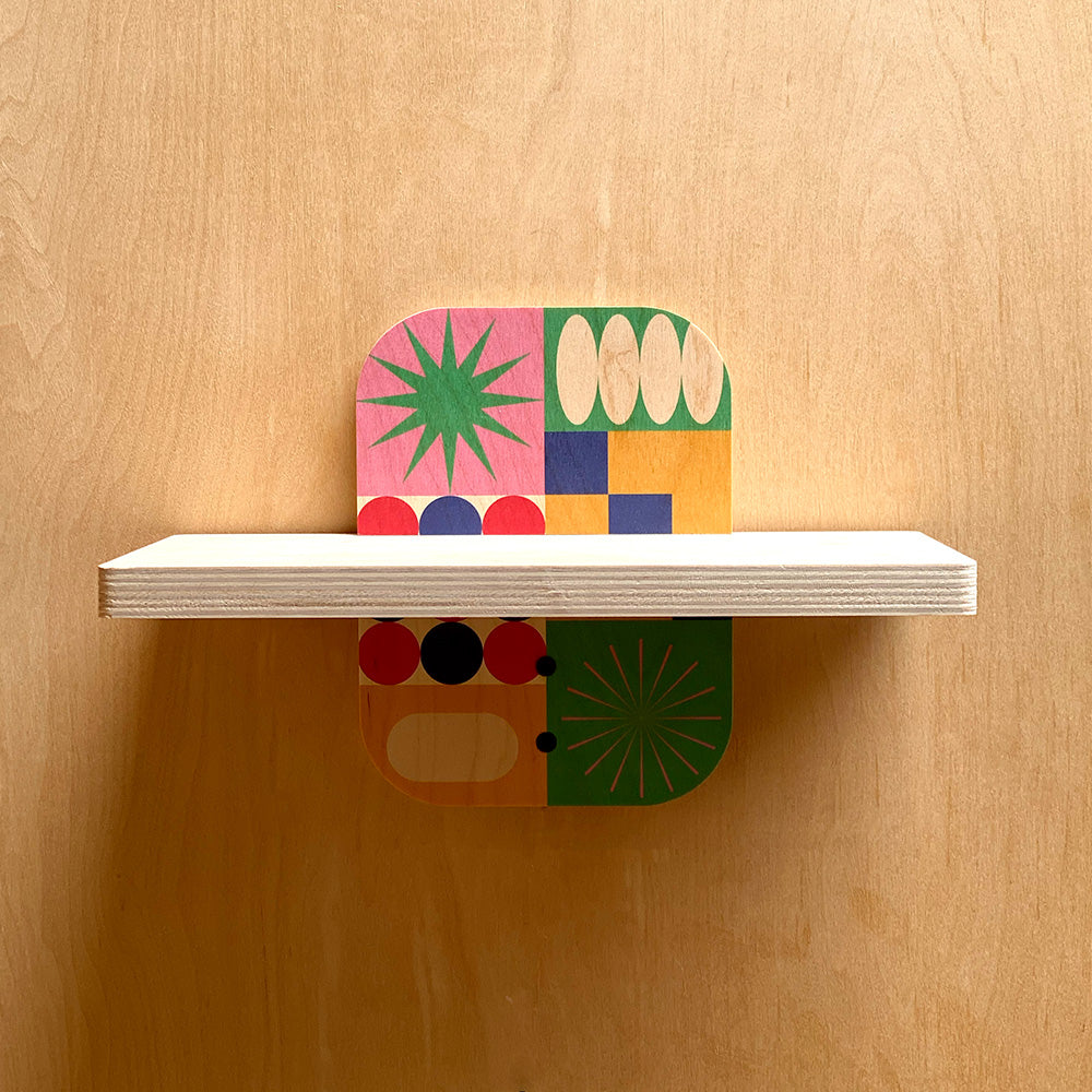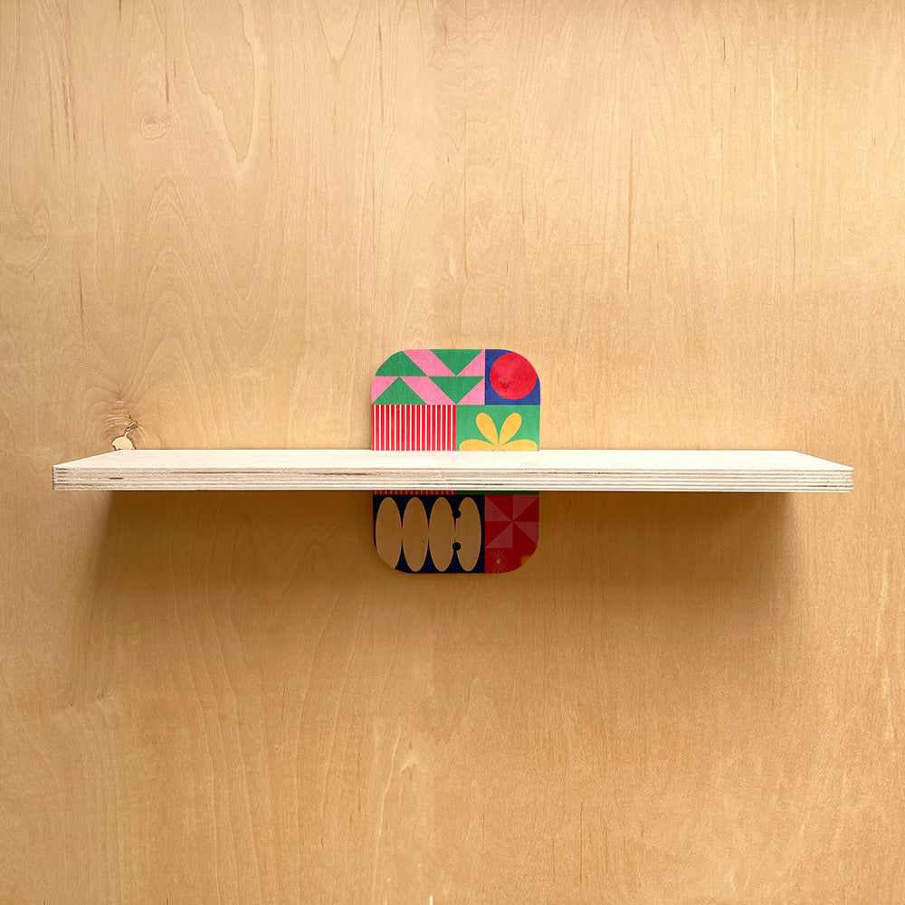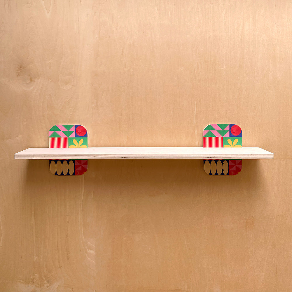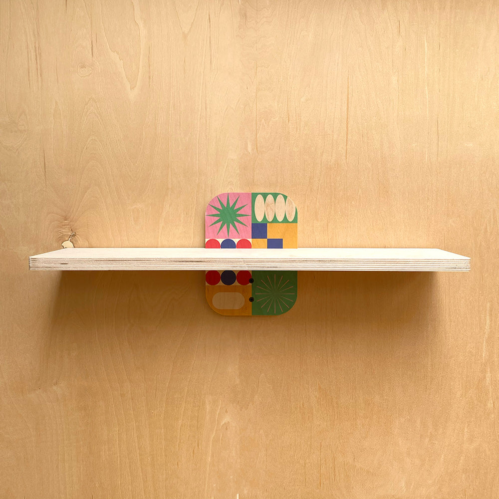 Now available in 12", 24", and 36" widths, each shelf features a 6" depth — the perfect platform for displaying books, plants, and decorative accents in any room. The real standout? Sturdy wall brackets, accented with your choice of three exclusive geometric prints that bring a modern artistic touch to everyday function.