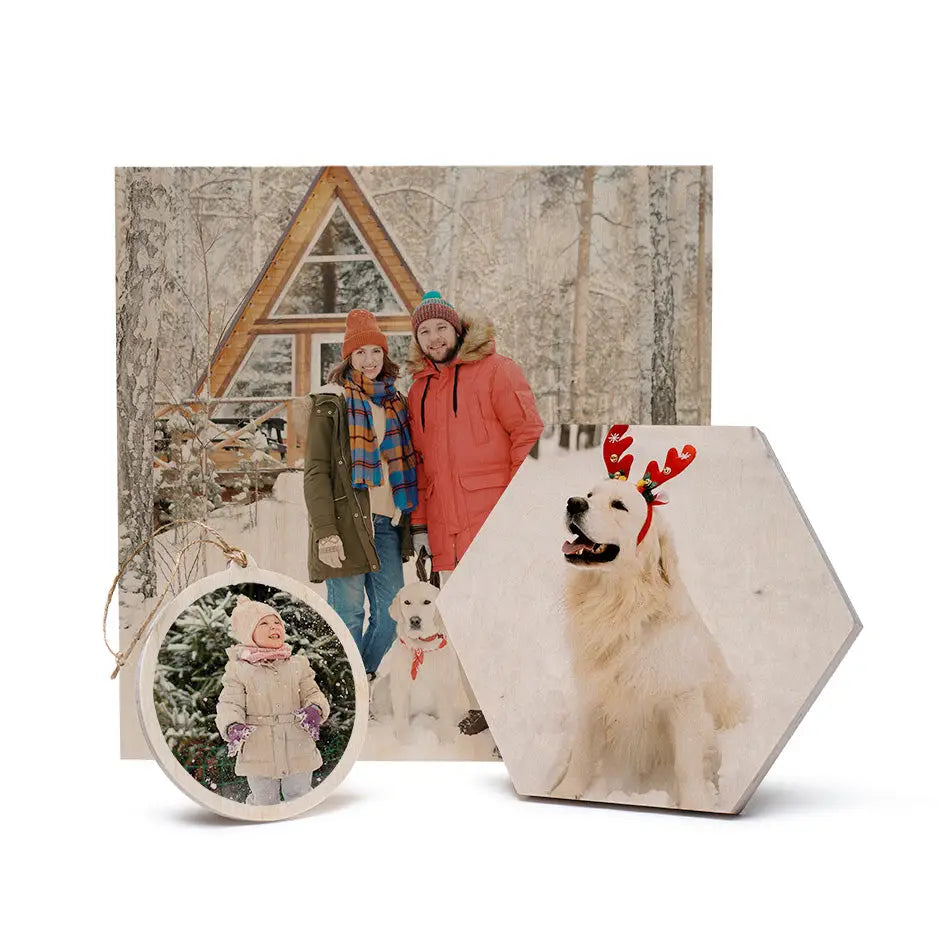 Celebrate the art of remembrance this Christmas with our exclusive 12x12, 8x8 Hexagon, and Circle Ornament wood print bundle. This collection is perfect for displaying your cherished moments or gifting heartfelt memories to your loved ones.