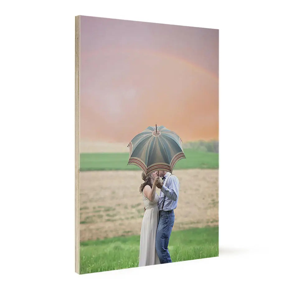 This timeless 20x30 wood print is made with sustainable inks on 3/4" birch wood. It's perfect for displaying your wedding photos, family portraits, and other special moments. Handcrafted in the U.S.A., it's sure to give you vivid color and detail that lasts. It's a great way to bring some groovy flair to your home and care for the planet!
