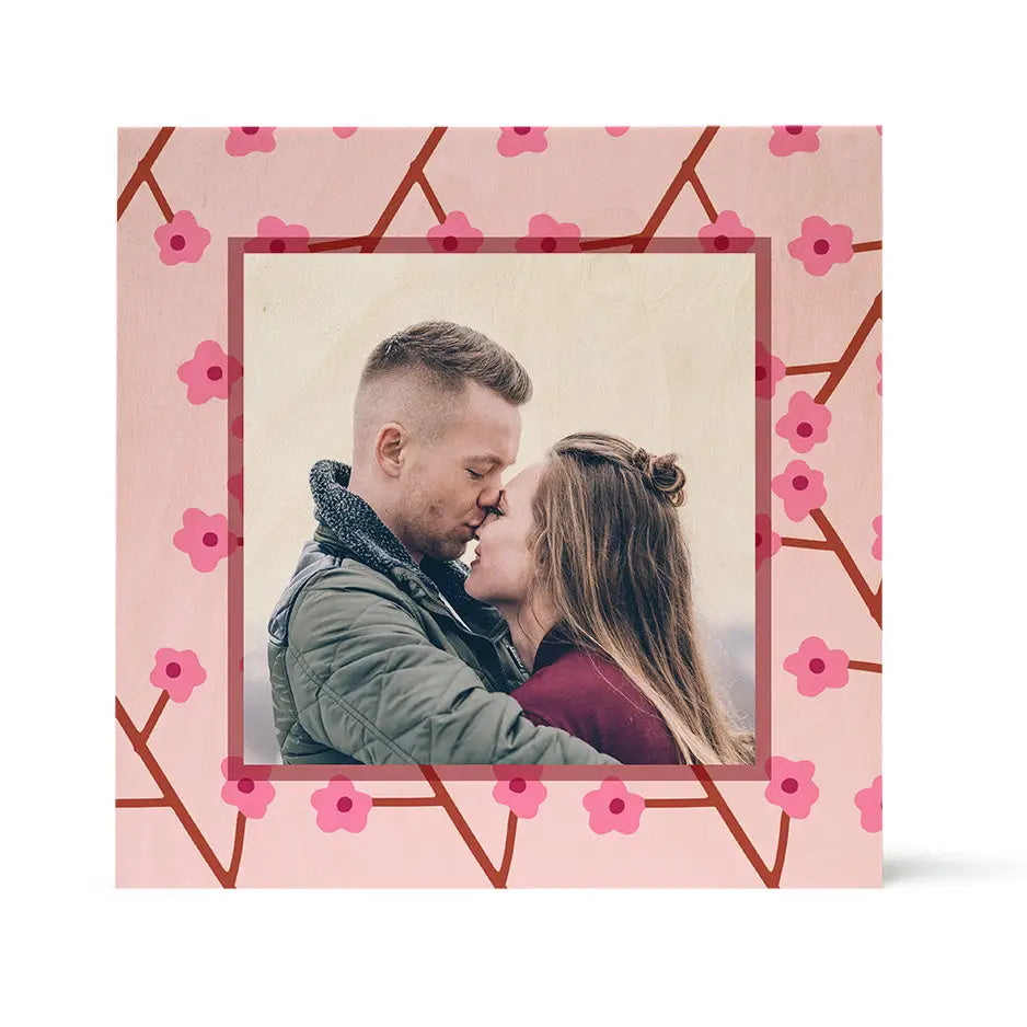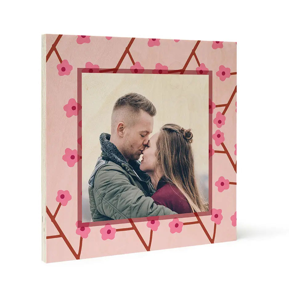 Valentine Cherry Blossom Birch Pattern Wood Print