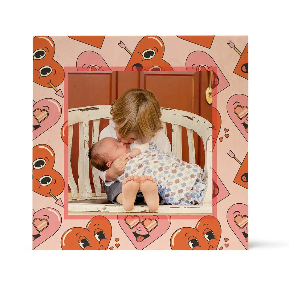 Birch Pattern Wood Print Featuring Valentine Toon Hearts